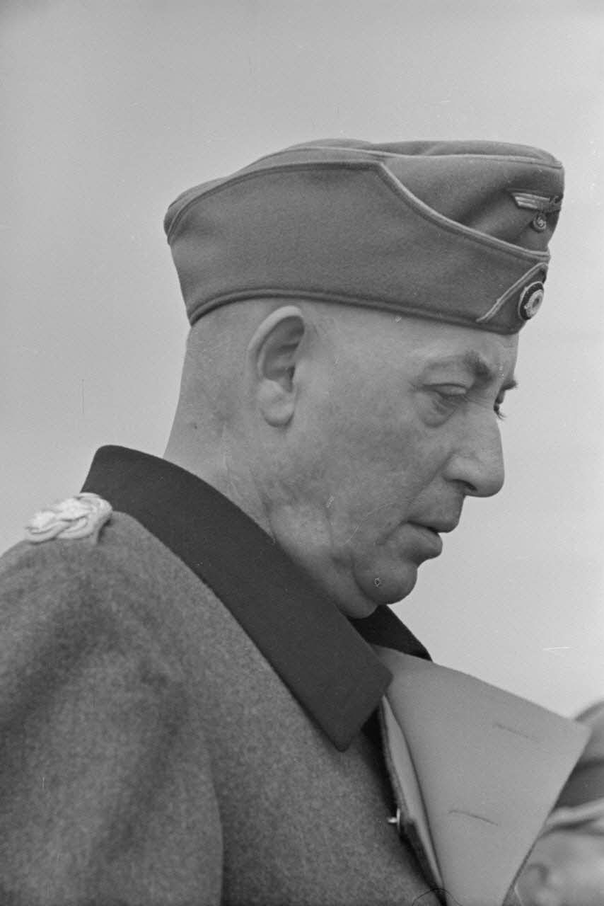 Sur le pont d'un navire de la Kriegsmarine, le général Friedrich Dollmann lors de manoeuvres de l'opération Seelöwe.