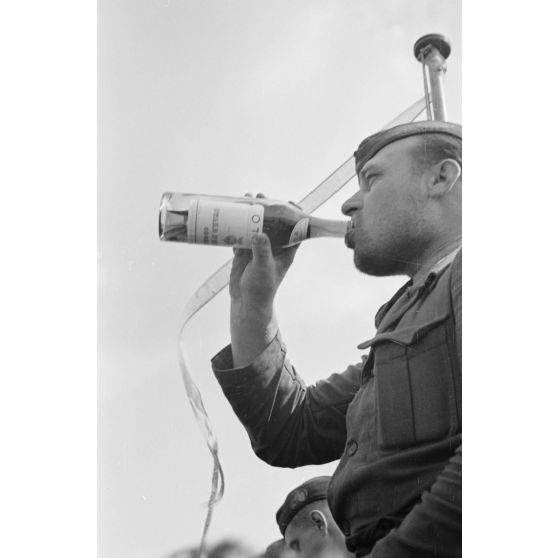 Peu avant le retour de croisière au port de Brest, l'équipage du sous-marin U-203 se détend.