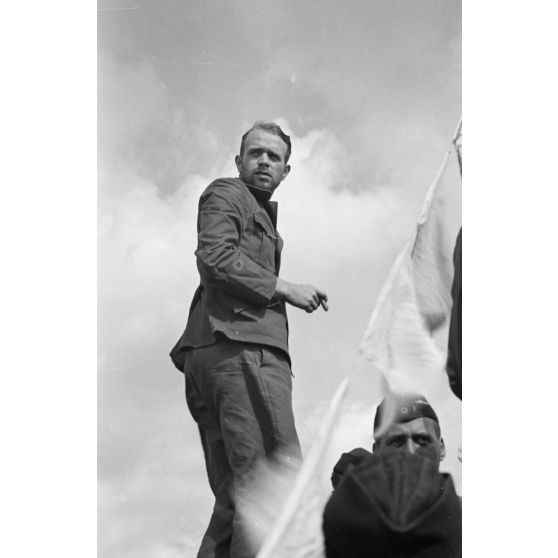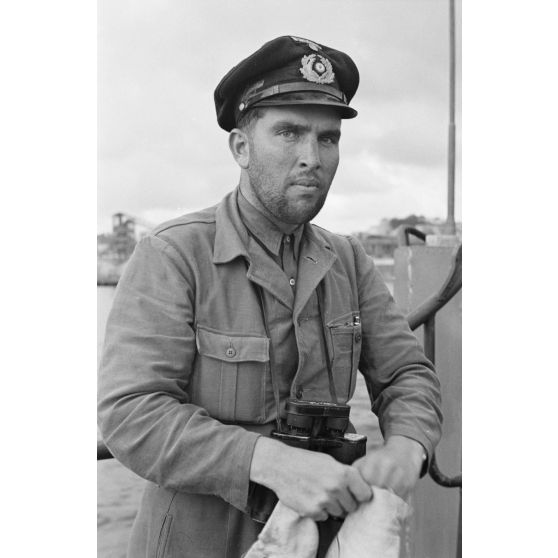 Un sous-lieutenant de l'équipage du sous-marin U-203 peu après son retour à l'arsenal de Brest.