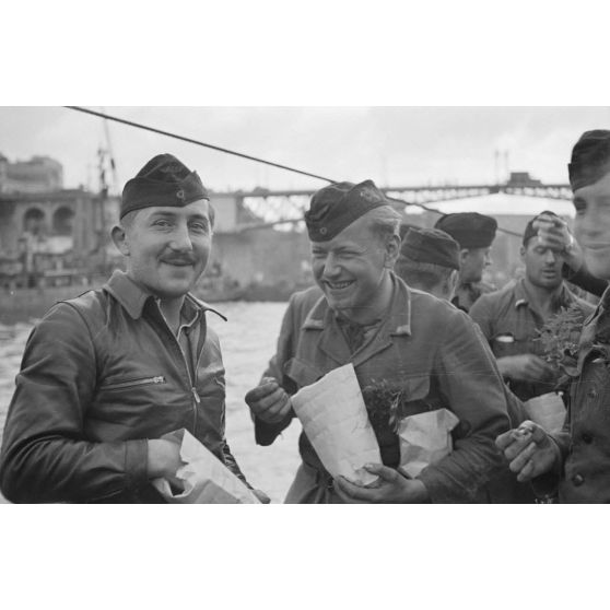 Des sous-mariniers du U-boot U-203 peu avant le retour de croisière au port de Brest.