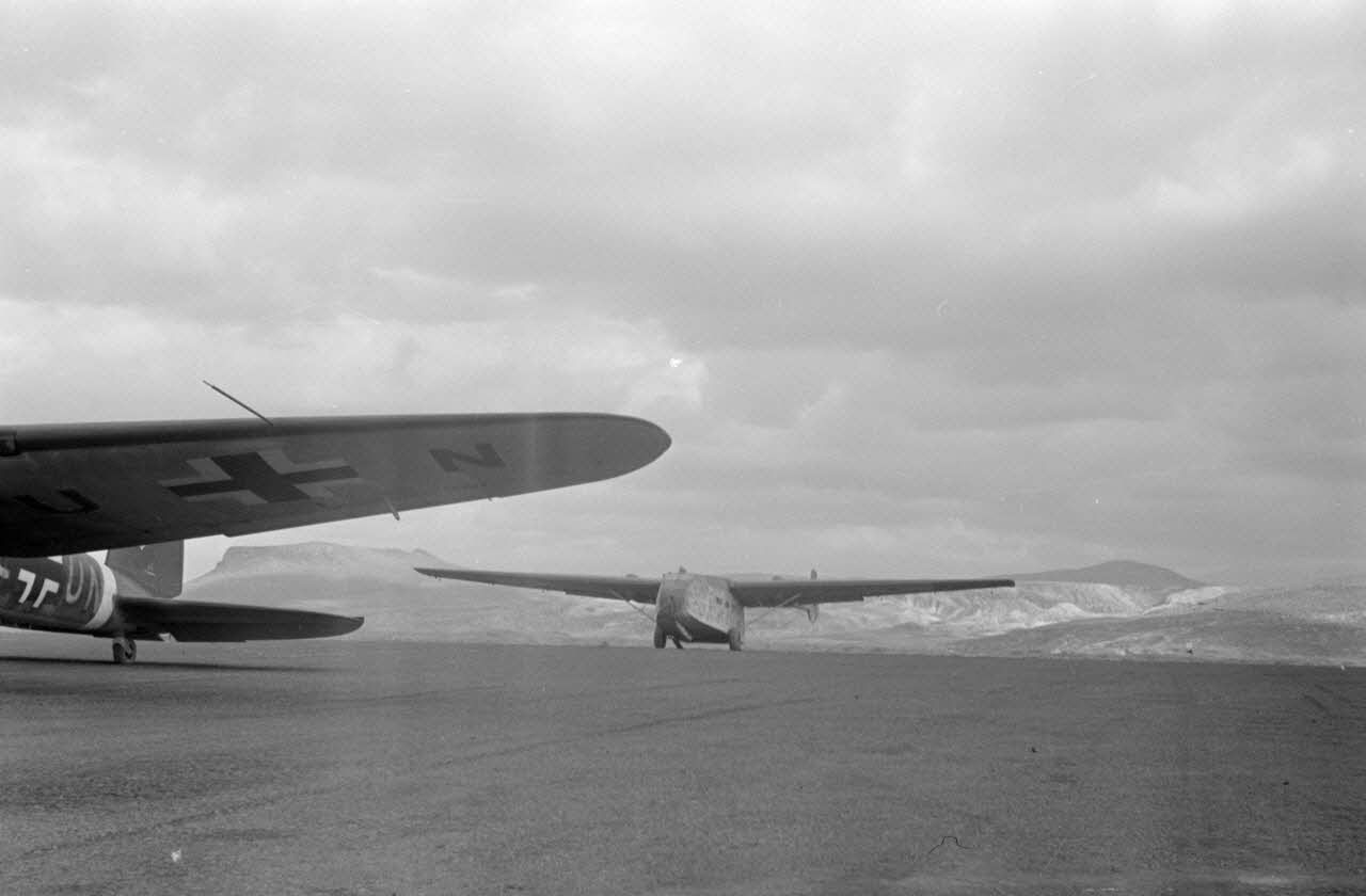 Sur le terrain d'Héraklion, le planeur Gothar Go-242 codé LM +2-11 vient d'arriver d'Afrique.
