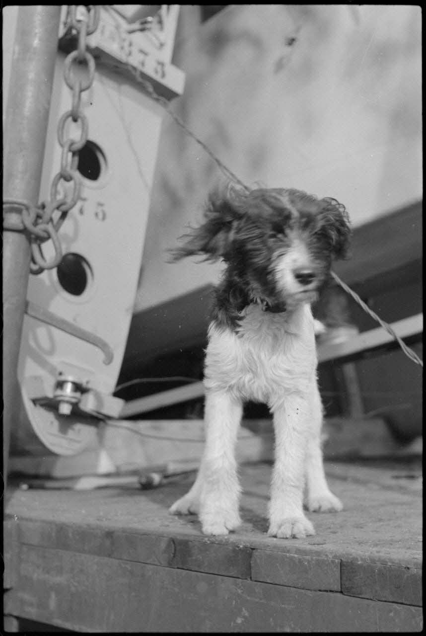 La mascotte du groupe (un chien) accompagne ses maîtres sur le chantier.