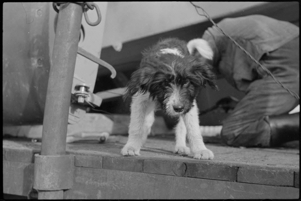 Sur le terrain d'aviation de Gardermoen, la mascotte du 8./LLG 1 (Lulftlandegeschwader 1) vient perturber le personnel du groupe lors de la fixation des planeurs DFS-230 sur des wagons de chemin de fer.