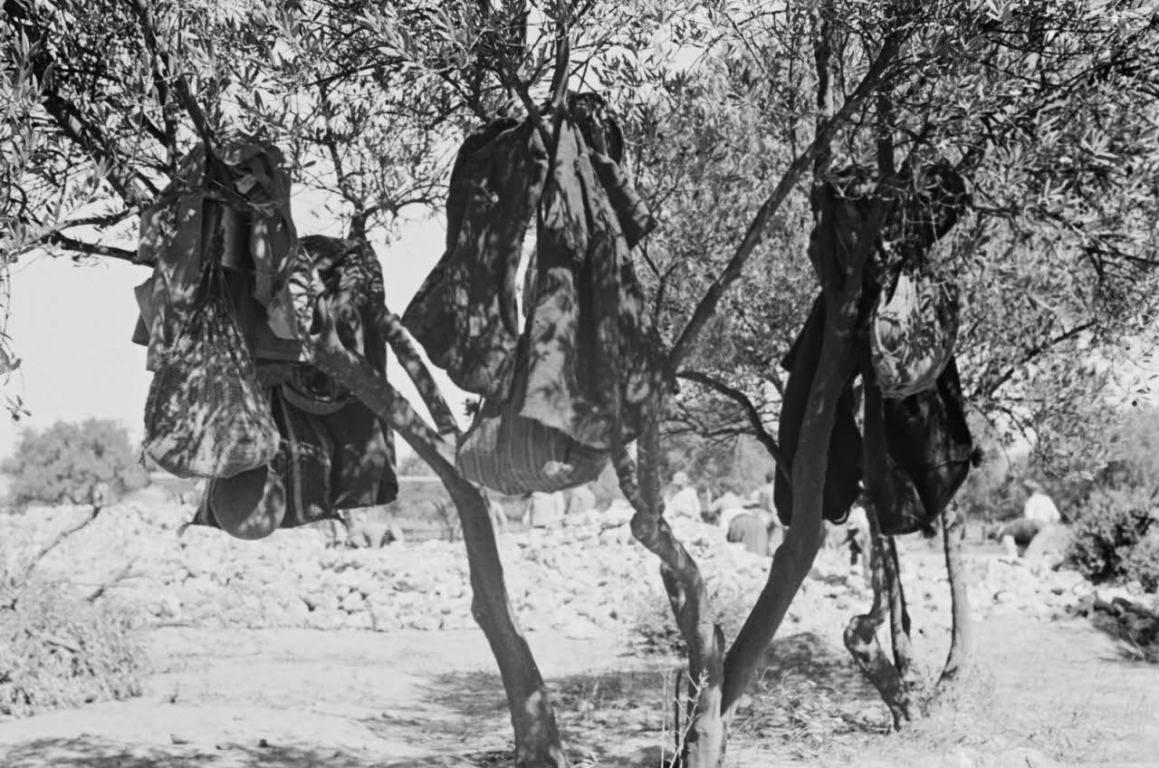 Ouvriers crétois réquisitionnés pour des travaux d'agrandissement du terrain d'aviation de Kastelli.