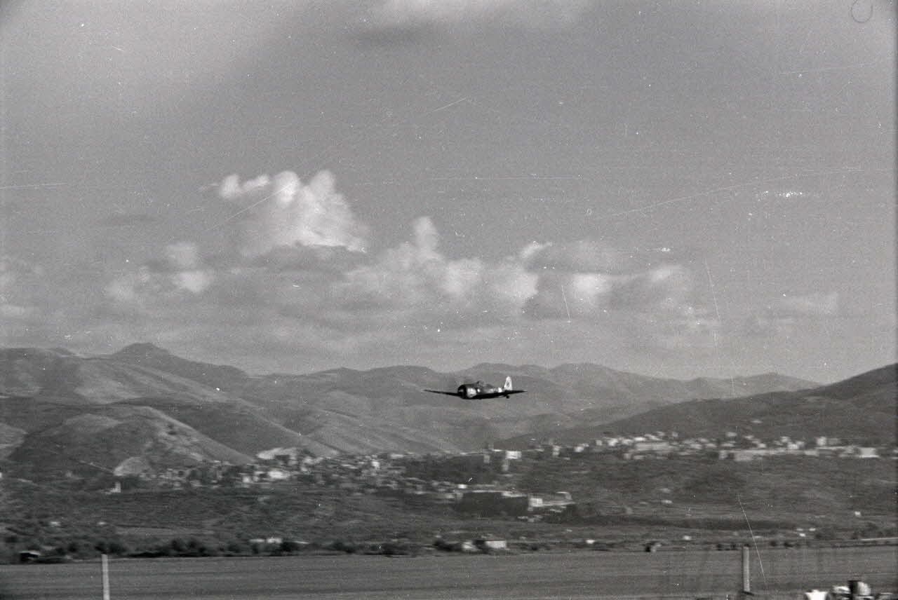Sur le terrain de Guidonia Montecelio, un chasseur Focke-Wulf Fw-190 du Schlachtgeschwader 4 (I./SG4) s'apprête à décoller, le moteur BMW tourne déjà.
