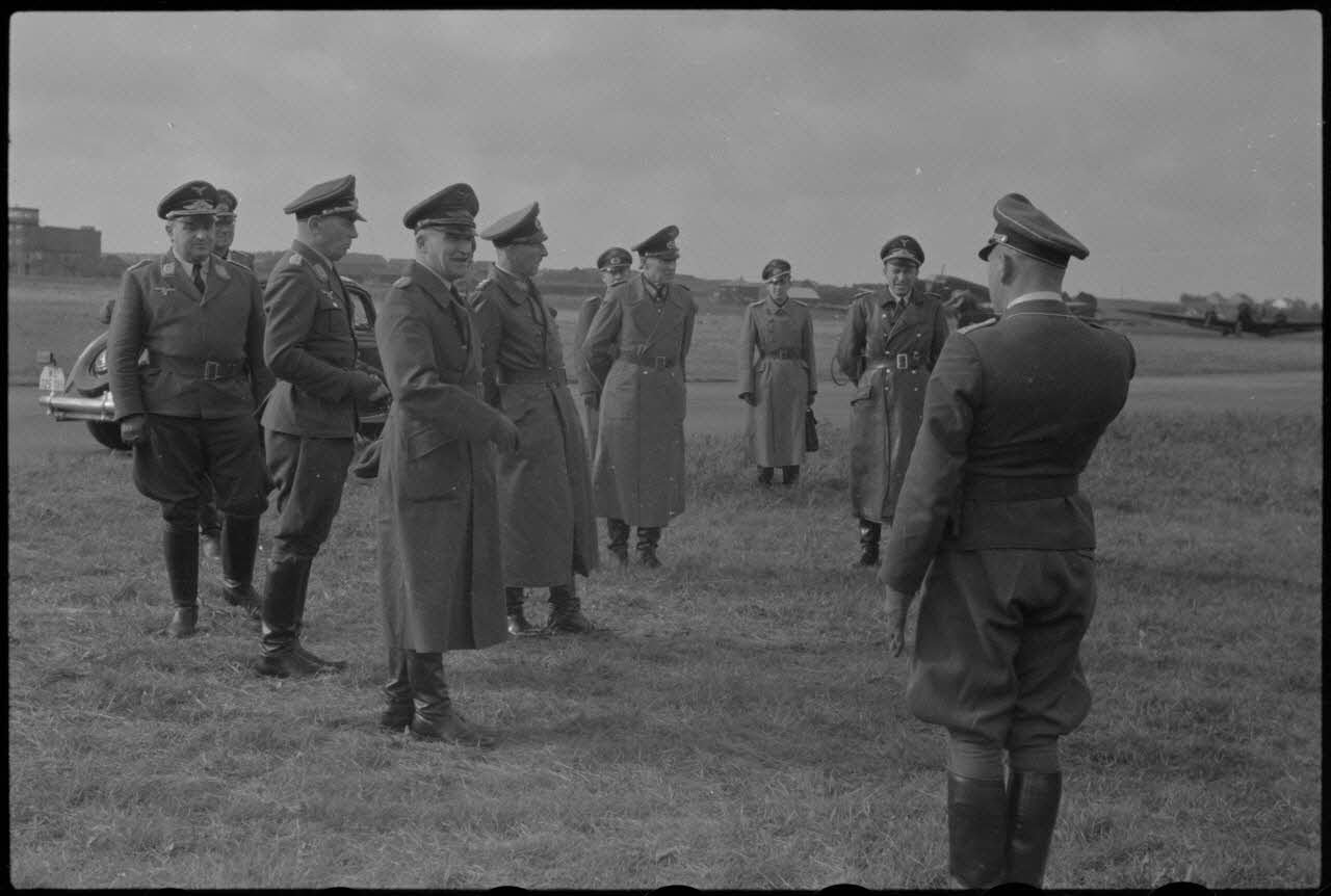 Les autorités de la Wehrmacht inspectent les installation du 8./LGG1 (Luftlandegeschwader 1) sur le terrain d'aviation de Stavanger-Sola.