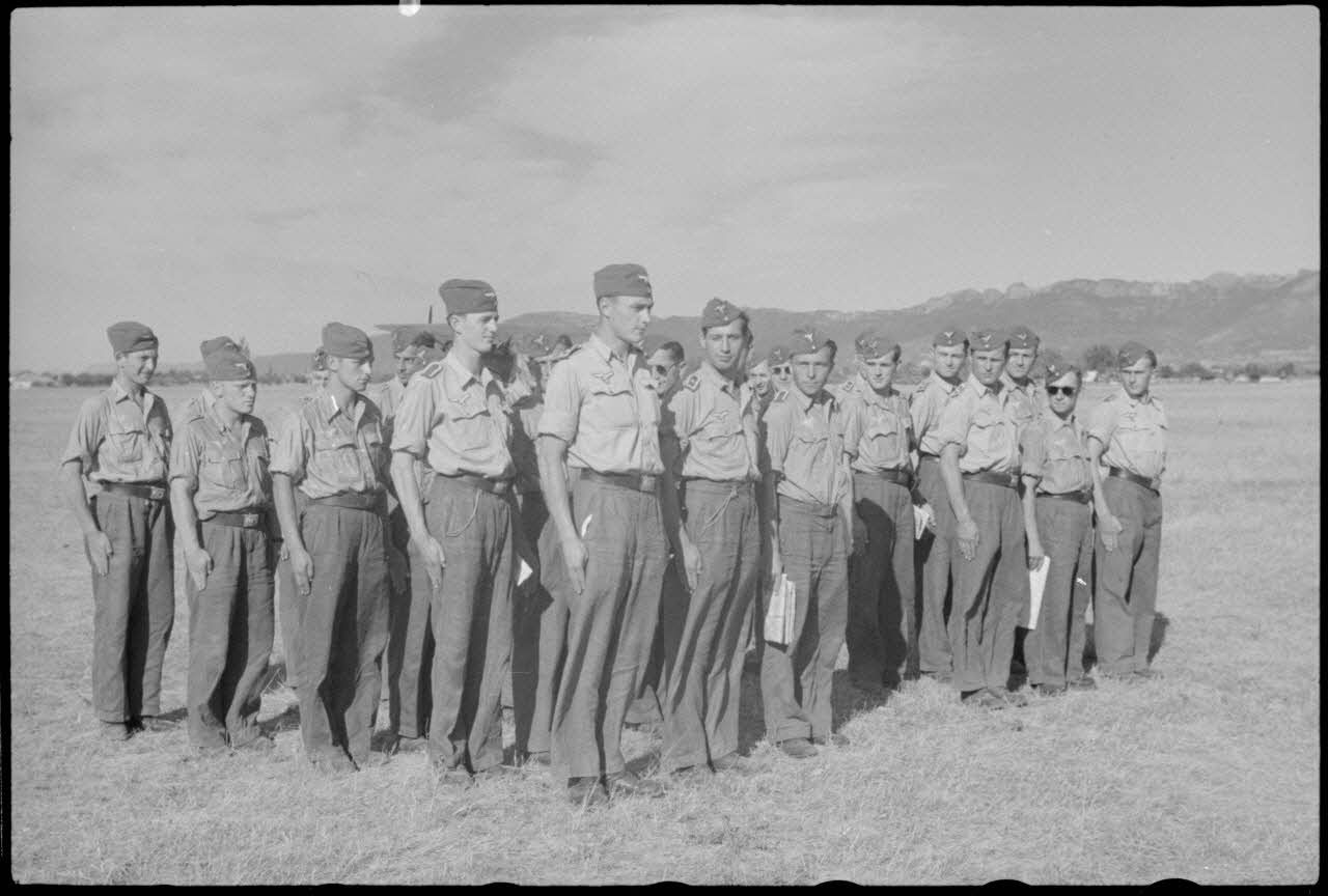 Sur le terrain d'aviation de Valence (Drôme), lors d'un briefing du 1er groupe aéroporté allemand (Luftlandegeschwader 1, III./LLG 1).