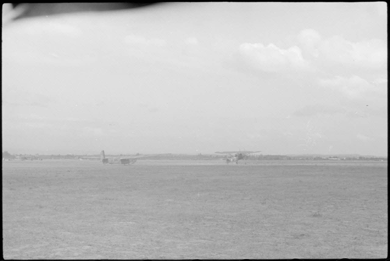 Sur le terrain d'aviation de Valence, lors d'un exercice, un avion Henschel Hs-126 et un planeur DFS-230 du IIIe groupe du Luftlandegeschwader 1 (III./LLG 1).