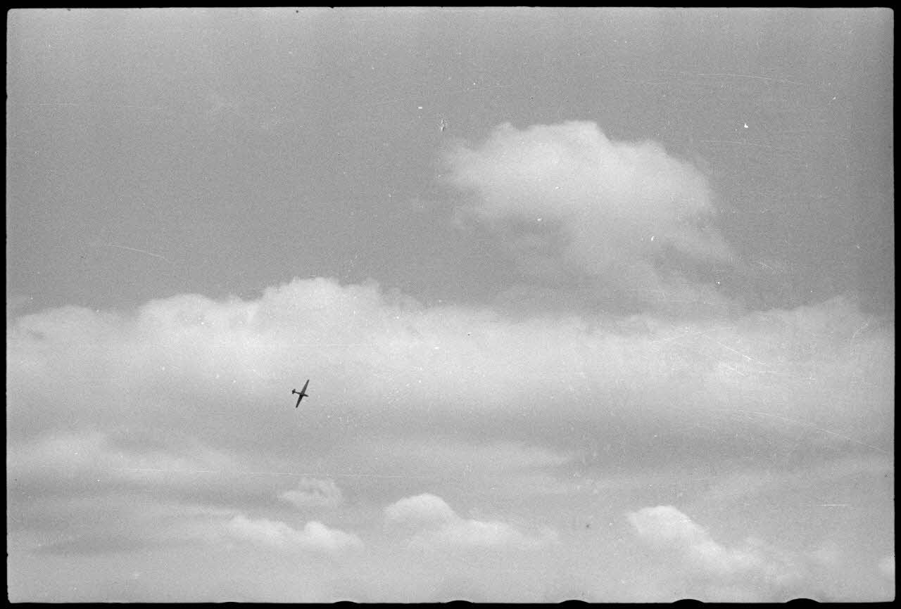 Sur le terrain d'aviation de Valence, lors d'un exercice, un planeur DFS-230 du IIIe groupe du Luftlandegeschwader 1 (III./LLG 1) se rapproche du sol.