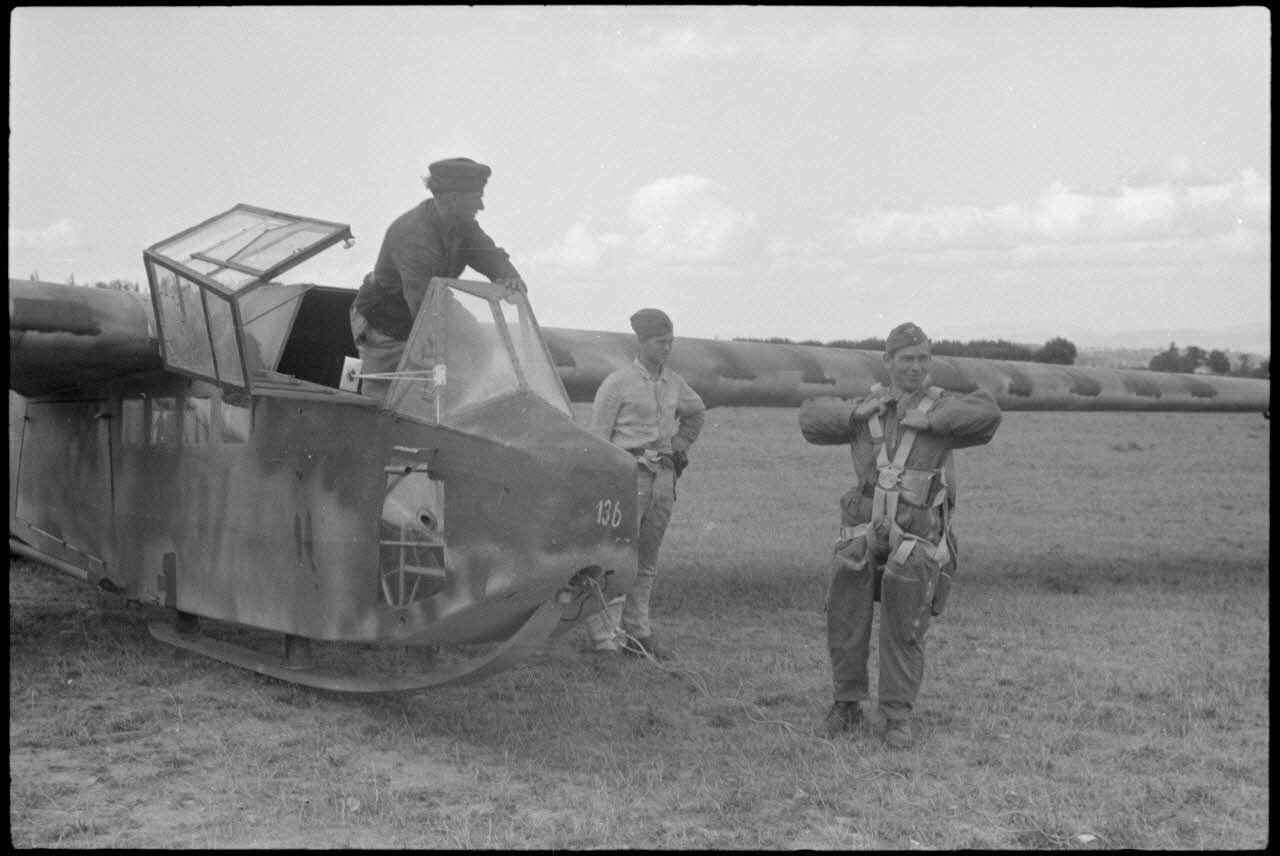 Sur le terrain d'aviation de Valence occupé par le IIIe groupe du Luftlandegeschwader 1, peu avant un vol d'entraînement de jeunes pilotes de planeurs.