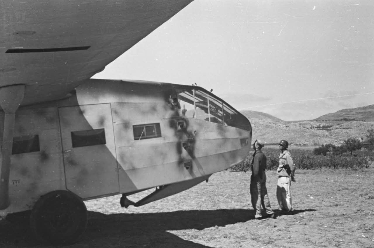 A Kastelli (Crète), au sein du Aufklärungs.Gruppe 123 (2./ Aufkl. Gr.123), la maintenance d'un Junkers Ju-88 peu avant une mission de remorquage d'un planeur Gotha Go-242.