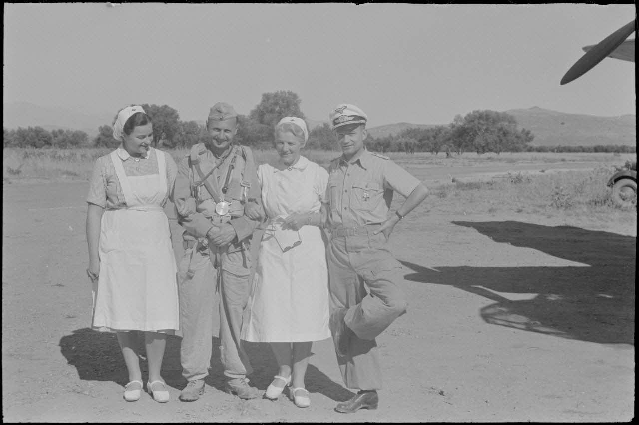 Au foyer du soldat (Soldatenheim) de Kastelli (Crète), une exposition d'objets, un concert de la musique militaire de la Luftwaffe et le depart du reporter Ottahal à bord d'un Junkers Ju-88 de l'escadrille de reconnaissance 2.(F)/ 123.