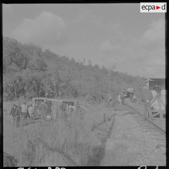 Tournage d'une scène de sabotage et de déraillement d'un train.