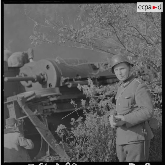 Sur le tournage du film Le jour le plus long. Sentinelle allemande sur les lieux de la catastrophe.