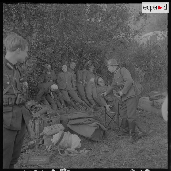 Sur le tournage du film Le jour le plus long. Maquisards après le coup de main.