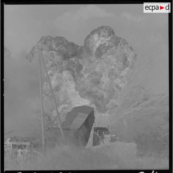 Sur le tournage du film Le jour le plus long. Explosion du train.