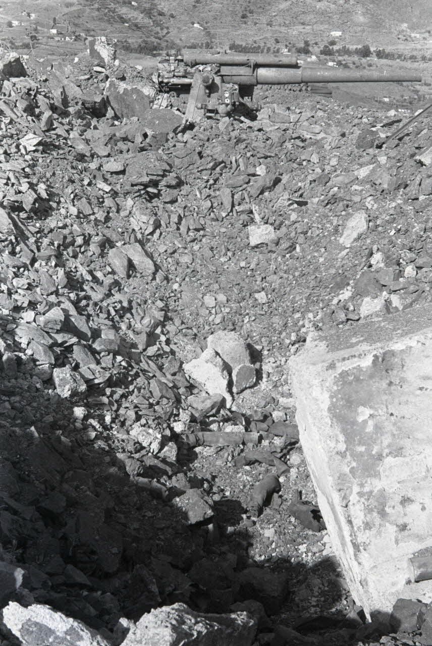Sur les hauteurs de Meraviglia ('île de Leros), le canon défendu par des troupes italiennes et britanniques.
