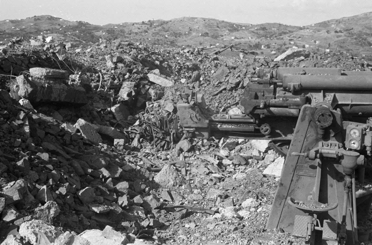 Sur les hauteurs de Meraviglia ('île de Leros), le canon défendu par des troupes italiennes et britanniques.