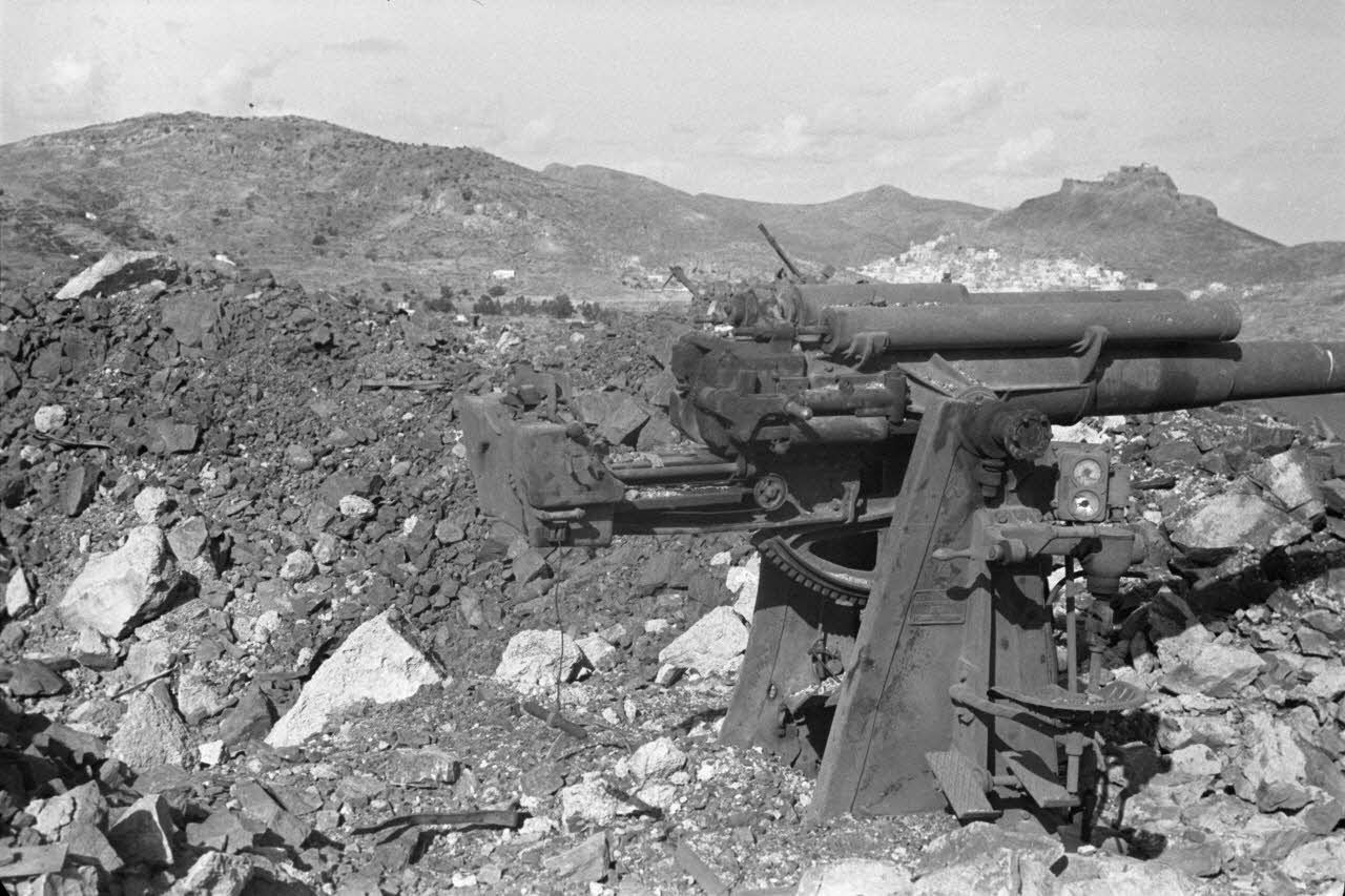 Sur les hauteurs de Meraviglia ('île de Leros), le canon défendu par des troupes italiennes et britanniques.
