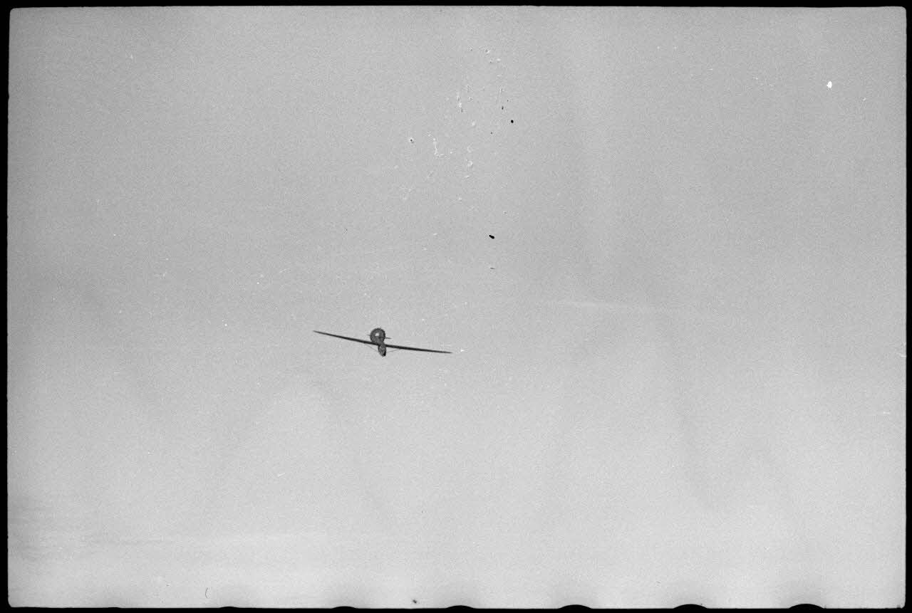 Au-dessus du terrain d'aviation de Valence, un Henschel Hs-126 débute sa descente grâce aux indications faites depuis le sol.