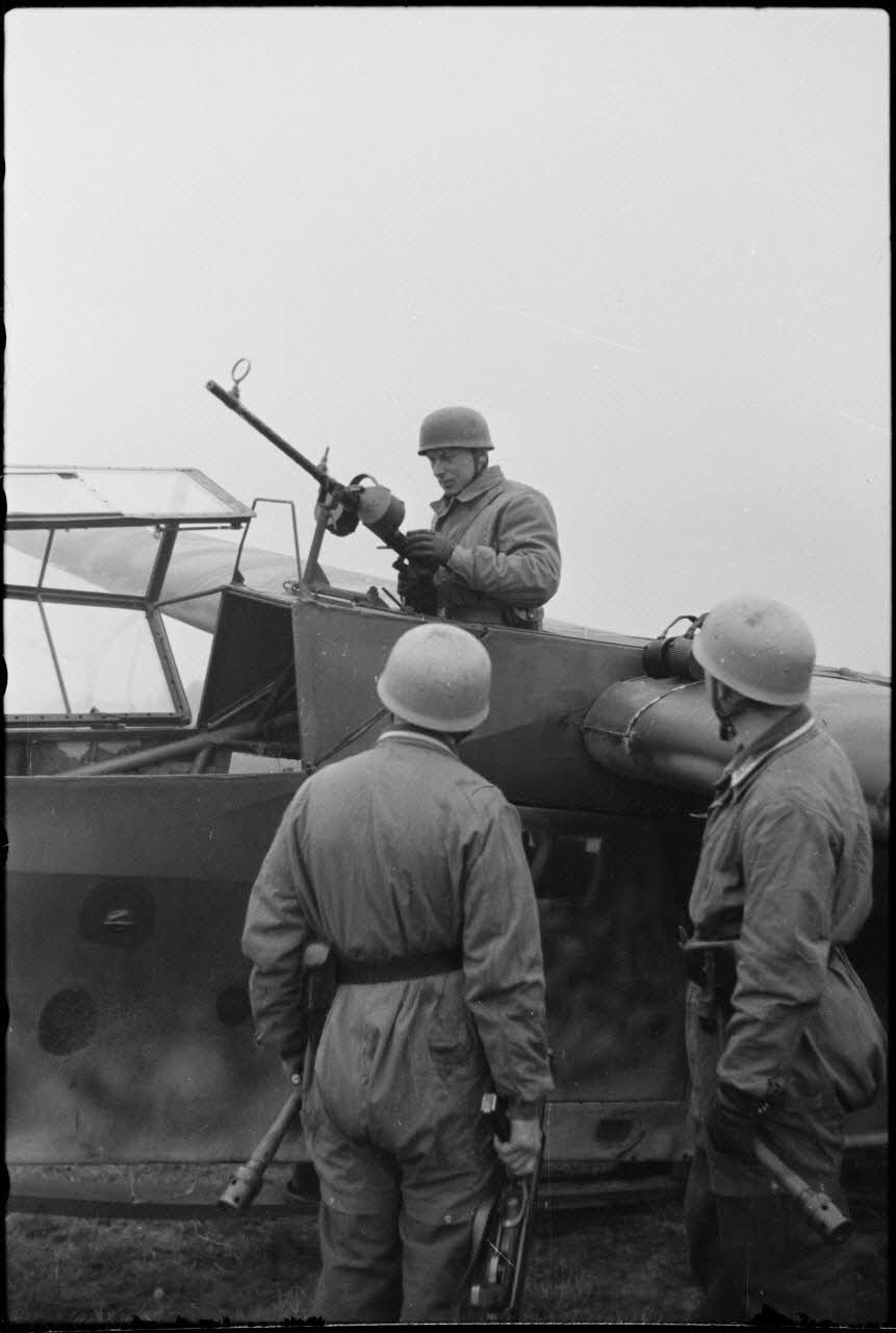Armés de pistolets-mitrailleurs MP-40, de grenades (fumigènes et d'exercice) ils sont appuyés par la mitrailleuse de bord MG-15 du planeur DFS-230.