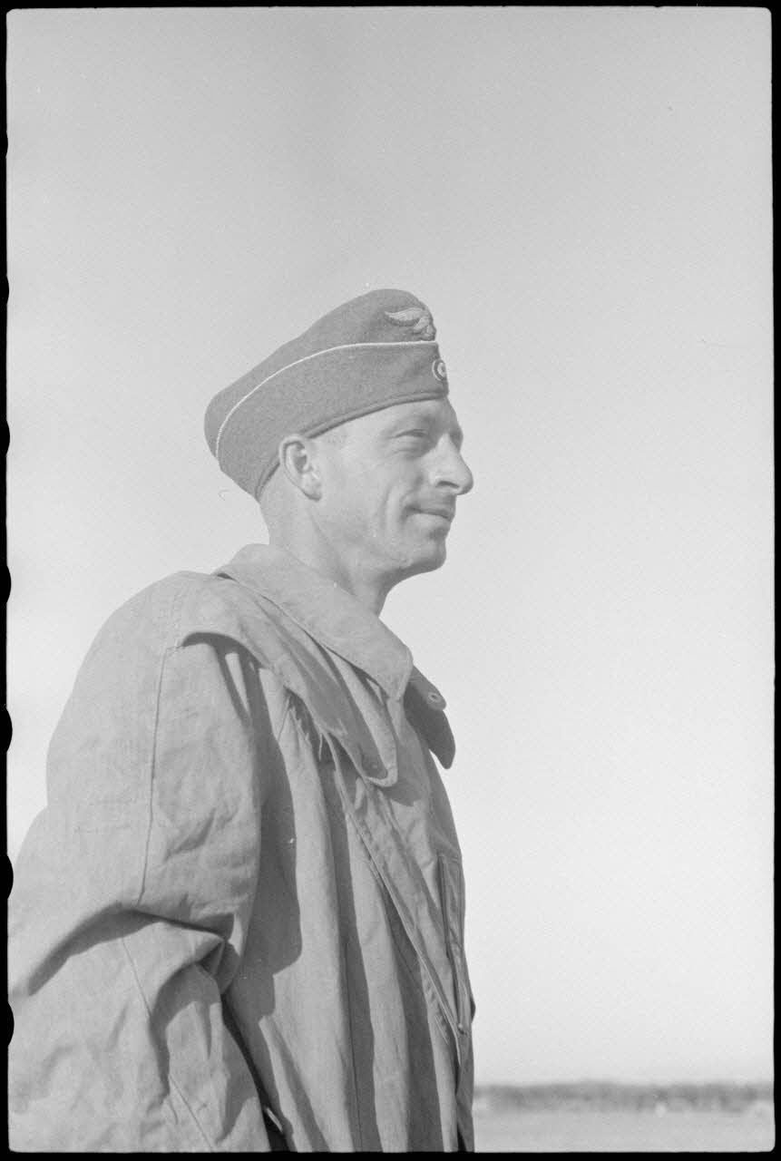 Sur un terrain d'aviation de Valence, un officier du Luftlandegeschwader 1 observe le retour des avions après un exercice.