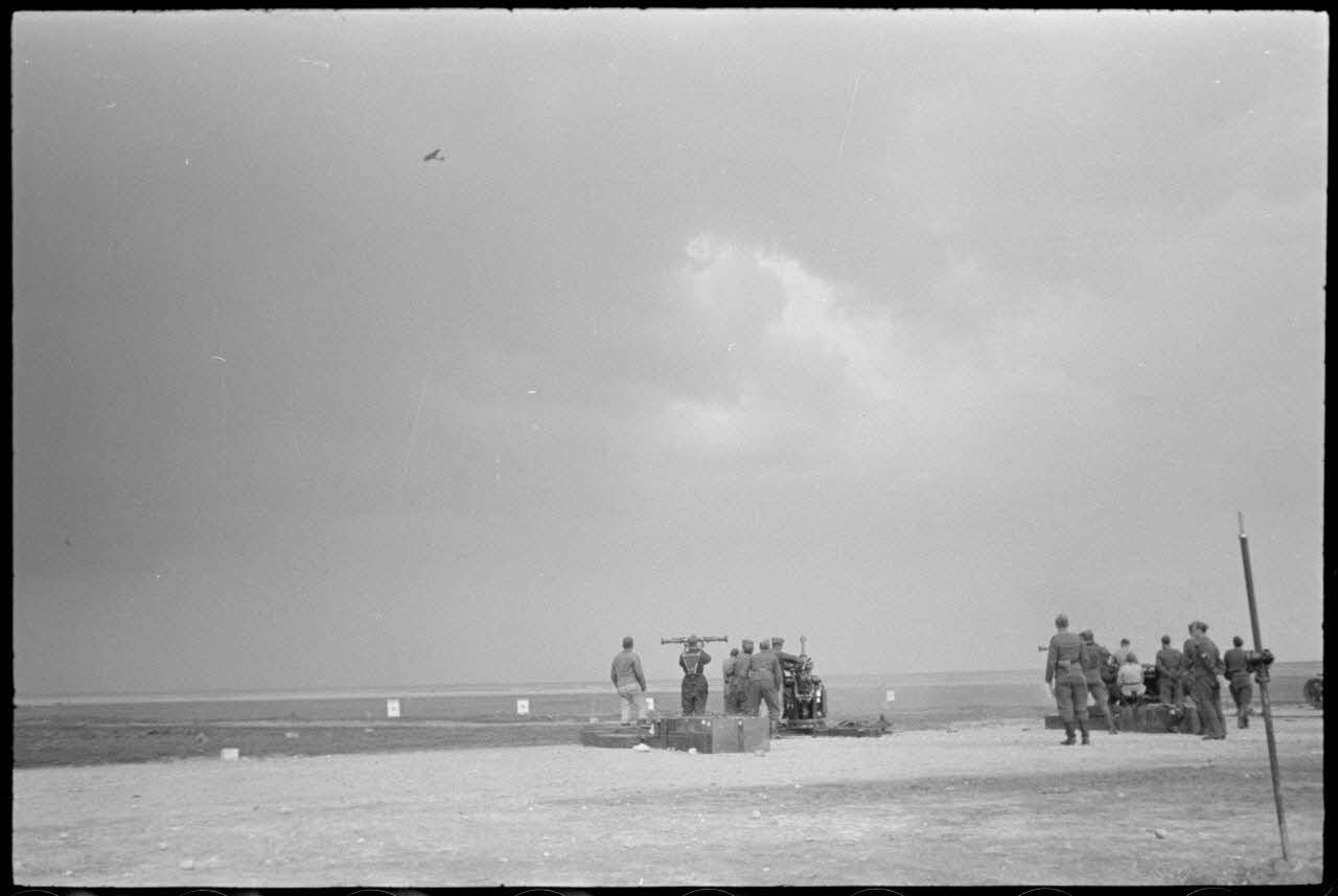 Sur un terrain d'aviation, la formation aux canons de DCA de 2 cm FlaK de jeunes artilleurs du Reichsarbeitdienst (RAD).