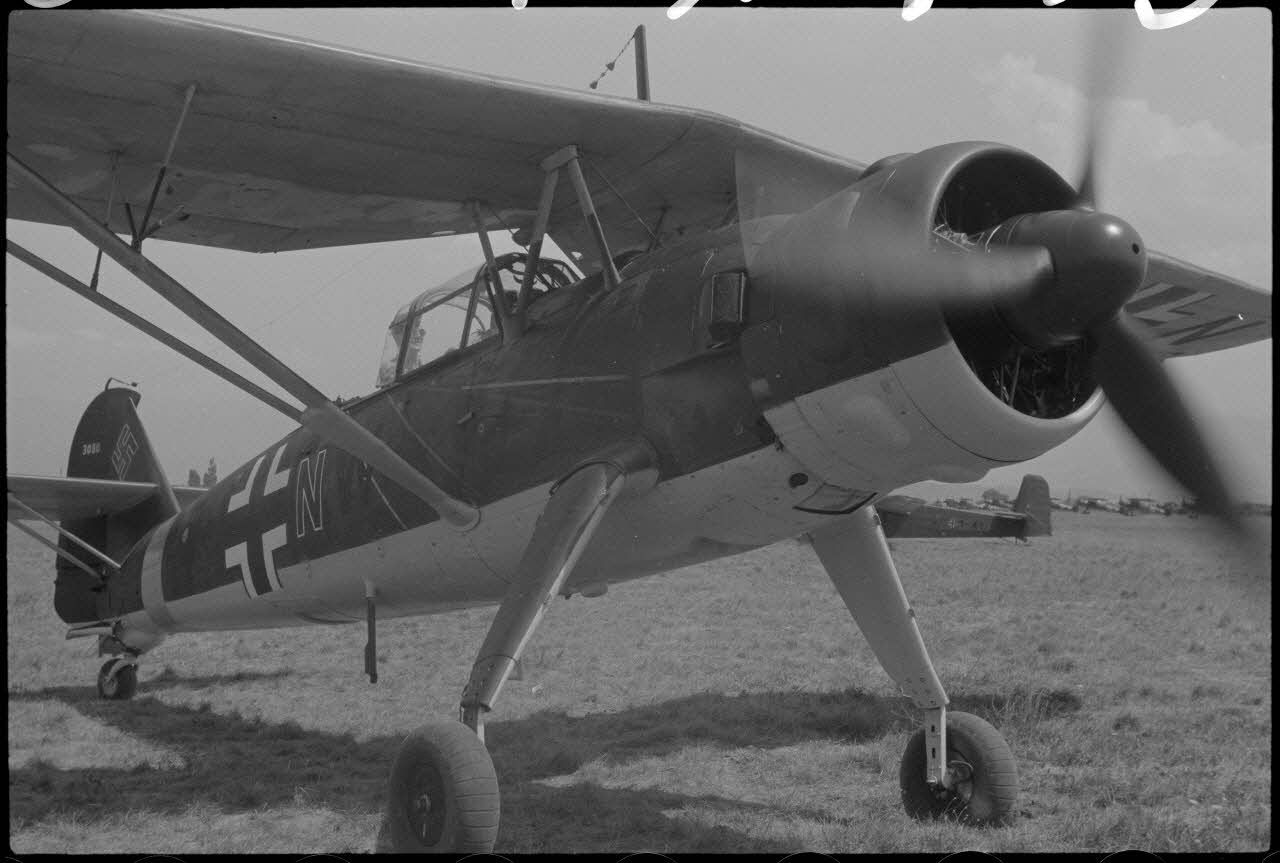 Dans la Drôme, un vol de reconnaissance à bord du Henschel Hs-126 codé H4+NW évoluant au sein de la 1re escadre aéroportée (Luftlandegeschwader 1).