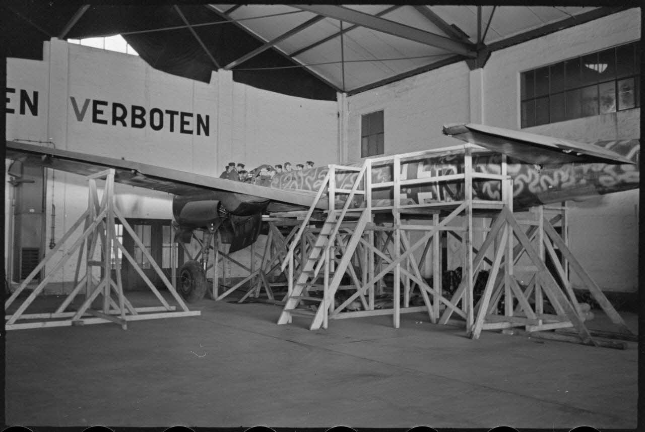 Sur un terrain d'aviation occupé par le II./LG1 (Lehrgeschwader 1), des recrues se confrontrent au cockpit du bombardiers Junkers Ju-88.