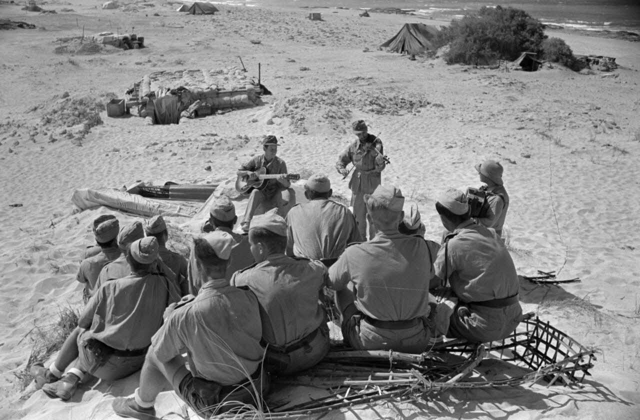 Sur une plage d'Egypte (El Quasaba), des membres de la KDF (Kraft durch Freude) jouent de la musique et chantent.