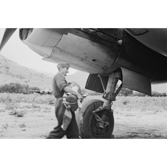 A bord d'un Junkers Ju-88 peu avant le départ pour une mission de reconnaissance (Aufklärungsgruppe 123).