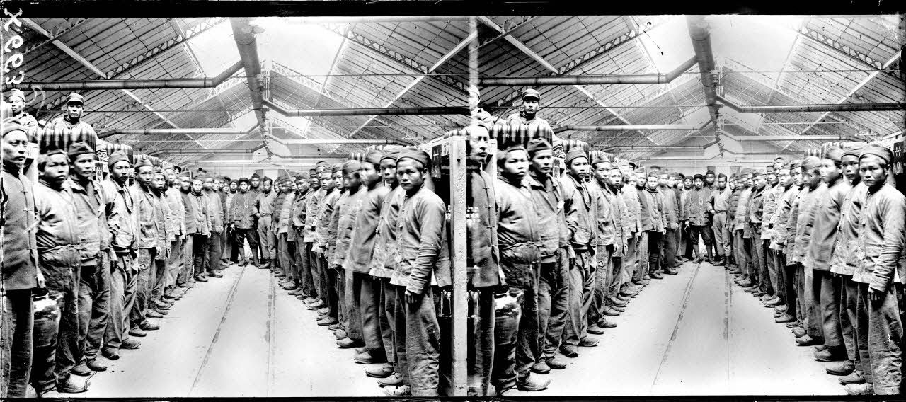 Ouvriers annamites au travail à l'arsenal de Tarbes en avril 1916.