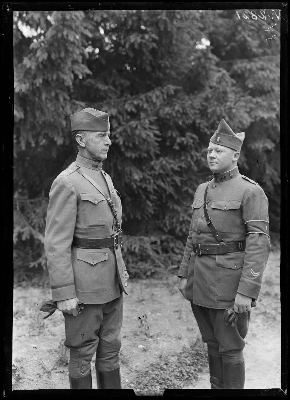 Tartigny, Oise, le général Bullard, commandant de la 1re division américaine, et son ordonnance. [légende d'origine]