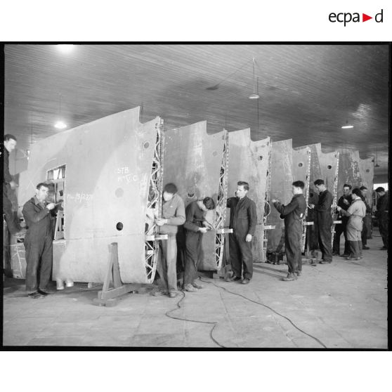 Réparation d'une cellule de Goëland à l'usine Caudron en Algérie.
