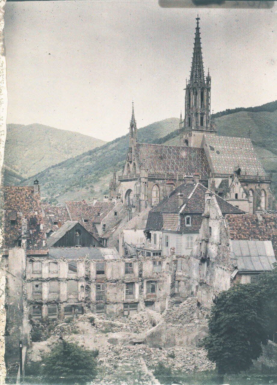 - les ruines et destructions occasionnées par la guerre à Verdun, Reims, Arras ou ailleurs : maisons, églises, cathédrales, lieux symboliques des grandes villes de province en ruines ;