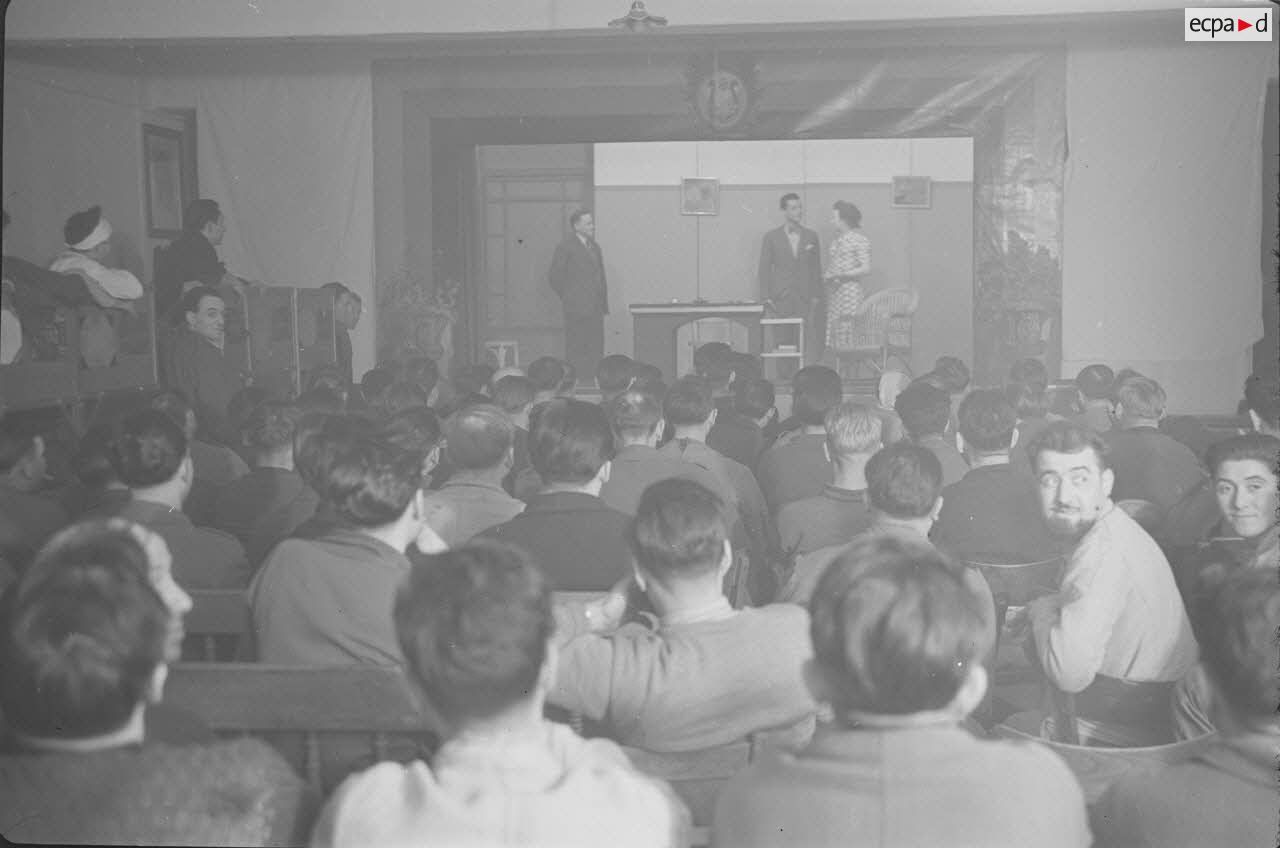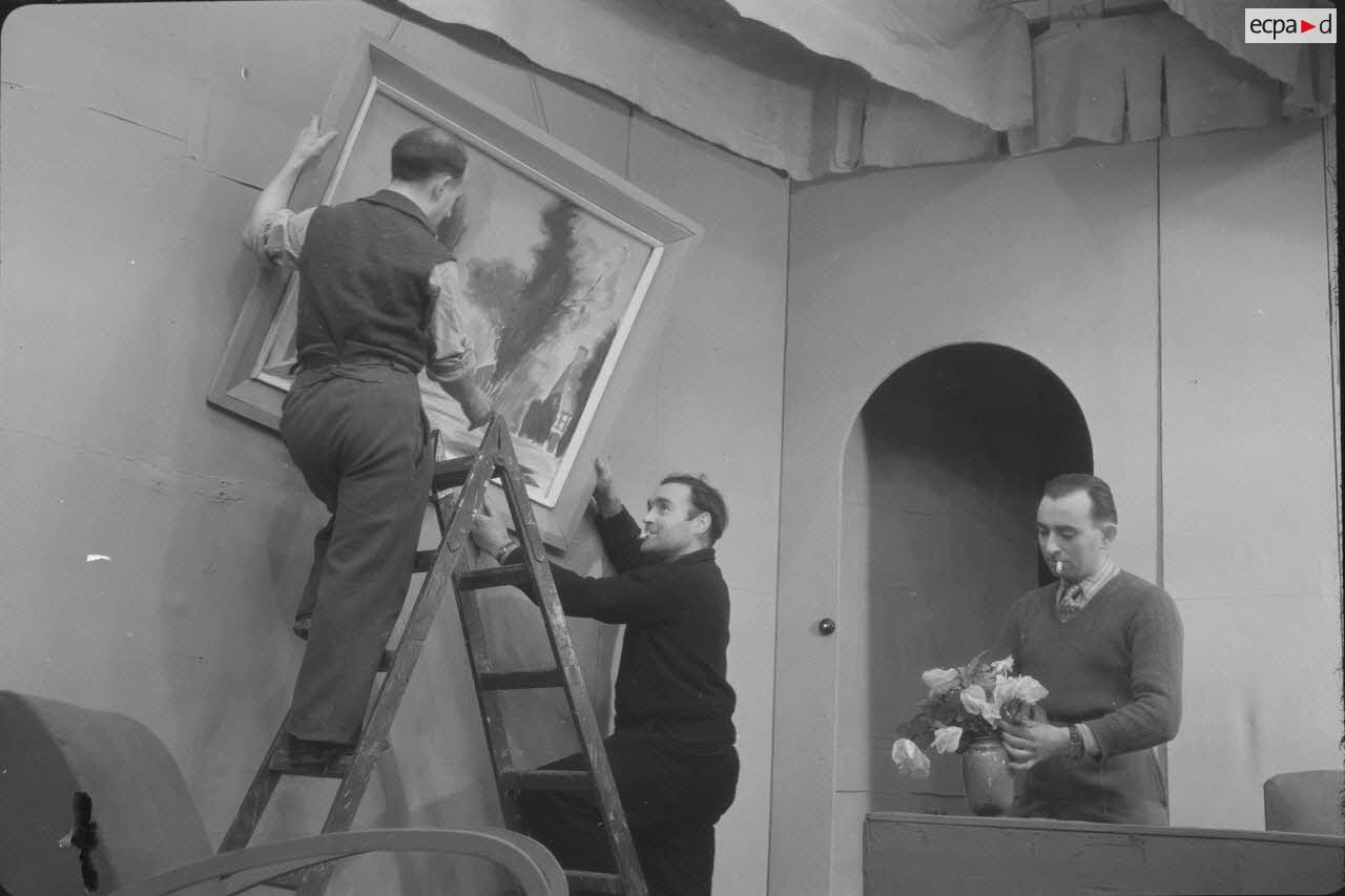 Les prisonniers des camps les mieux lotis ont le droit à une baraque dédiée aux activités théâtrales, ce qui leur permet de répéter dans des conditions tout à fait convenables. Mais c’est loin d’être toujours le cas. Certaines photographies prises au Stalag XII-D de Trêves laissent penser que les représentations étaient parfois données en extérieur, devant une baraque ou même devant des fils barbelés, ce qui devait donner une toute autre tonalité à la représentation.