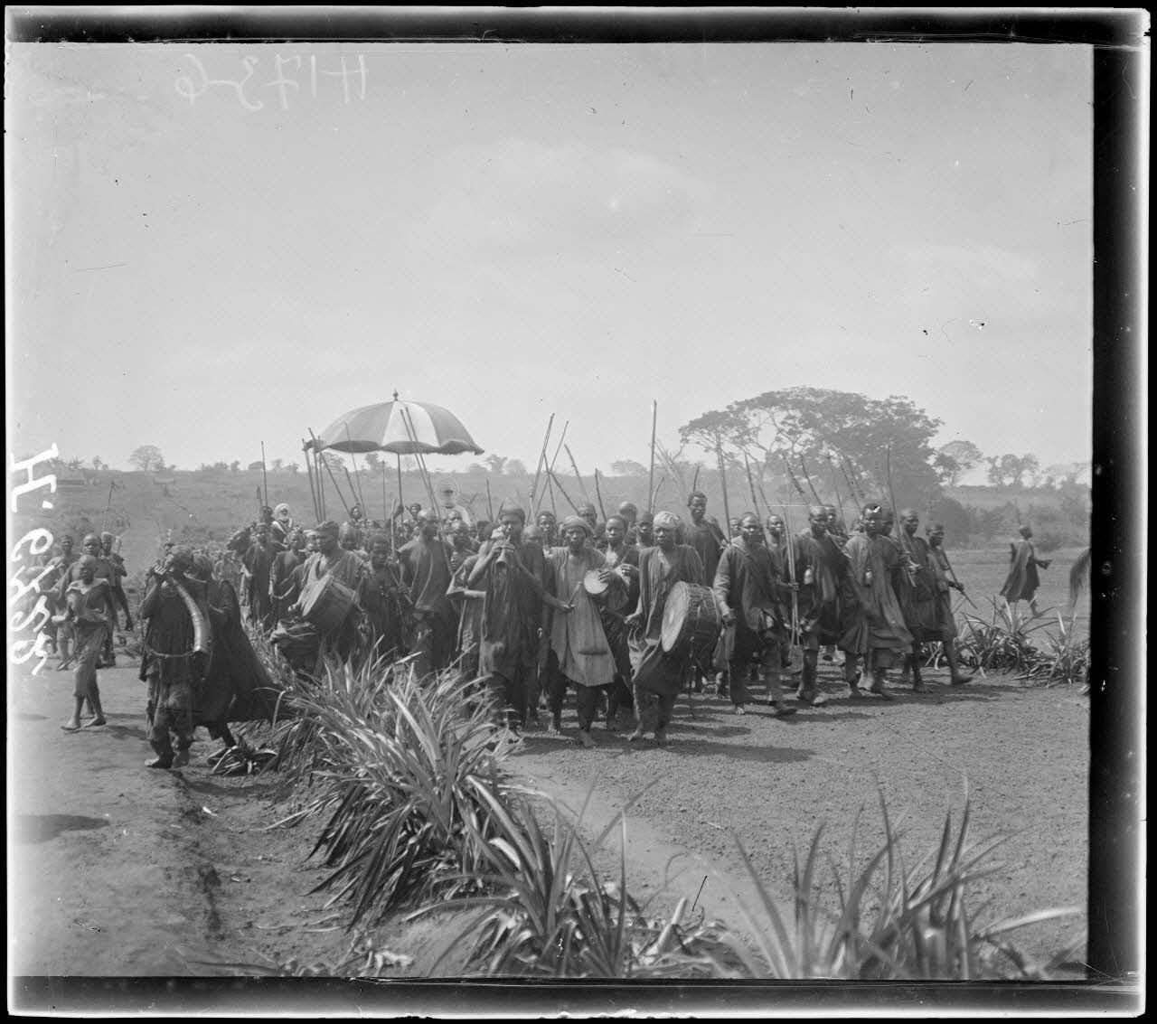 Tibati. Le lamido et sa suite dans la cour du poste.