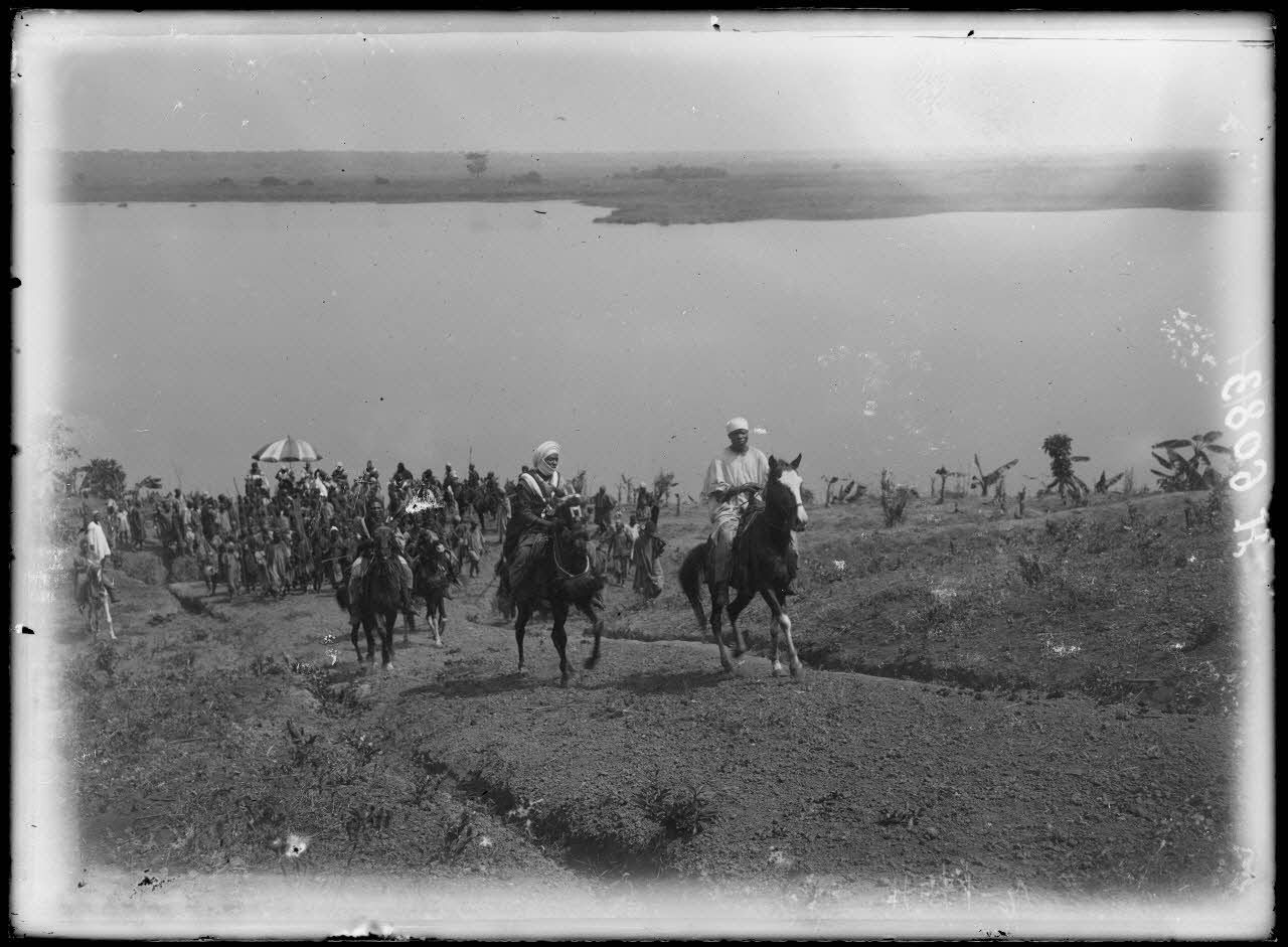 Tibati. Le Lamido de Tibati descendant avec son cortège vers les rives du lac. [légende d'origine]