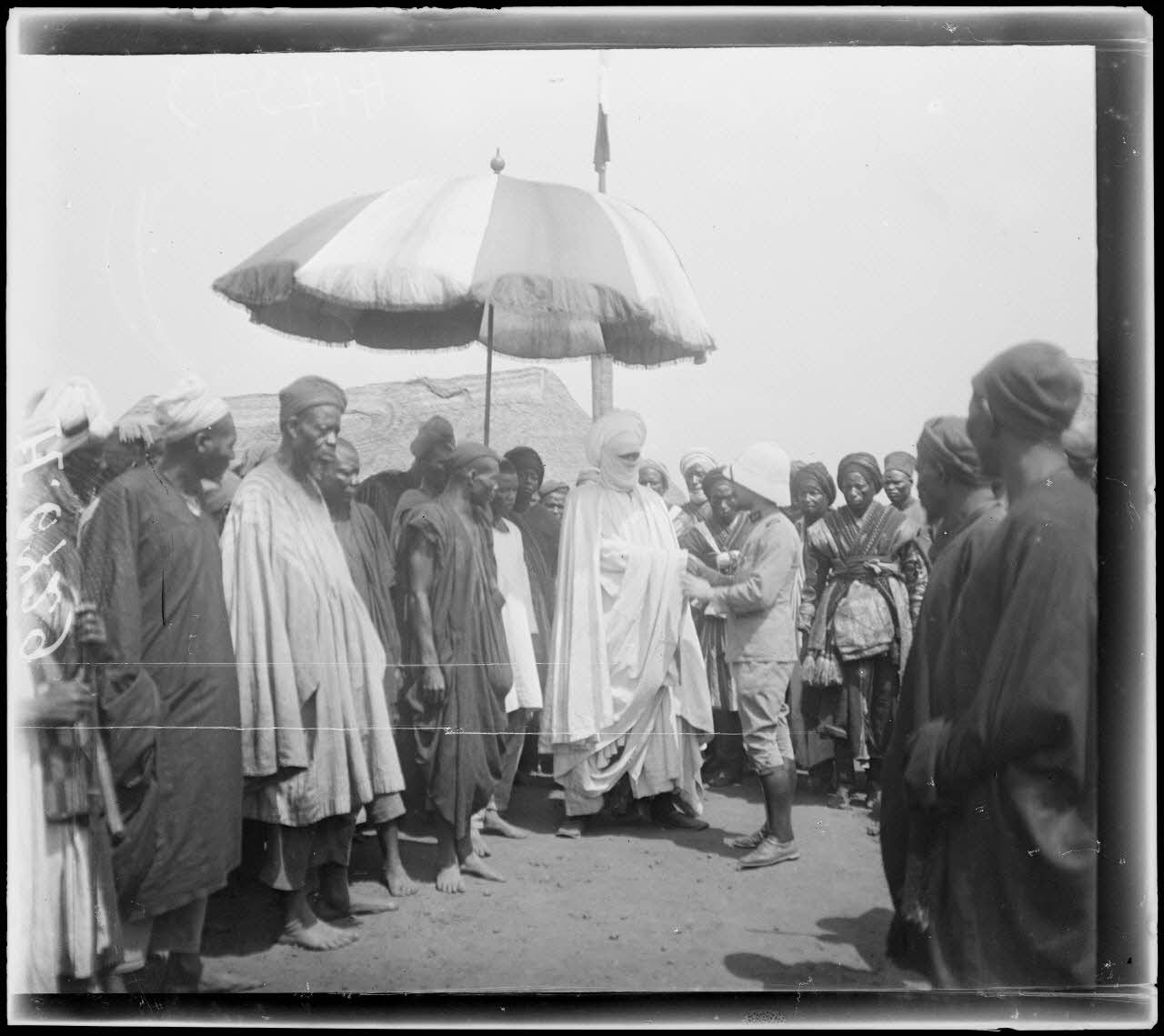 Tibati. Le lamido et sa suite dans la cour du poste. [légende d'origine]