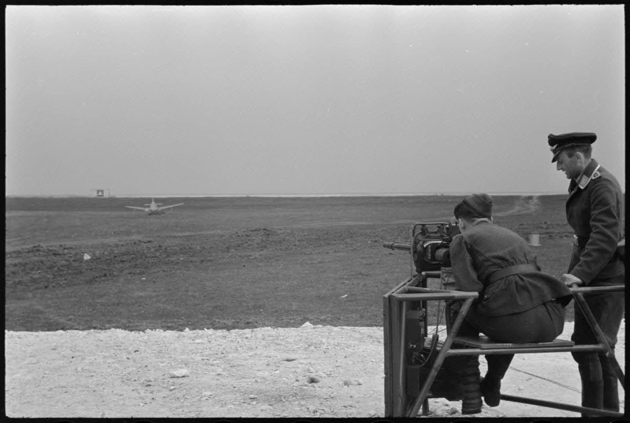 Tirs à la mitrailleuse MG-131 (Rheinmetall-Borsig MG 131) sur un terrain d'aviation occupé par le I.Lehrgeschwader I.