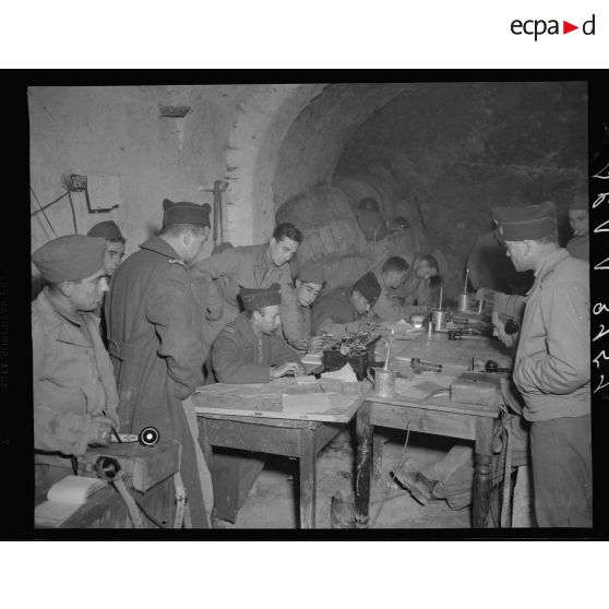 Poste de commandement du III/64e RAA, installé dans une cave, dans le secteur des monts Monna Casale et Monna Acquafondata.