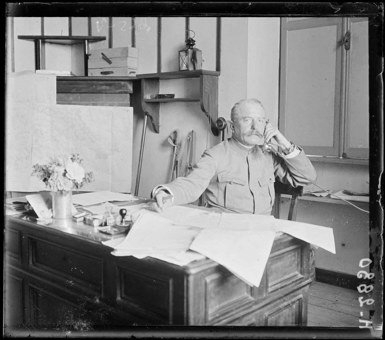 Topsin. Le lieutenant-colonel Bouin commandant le camp retranché de Salonique dans son bureau.