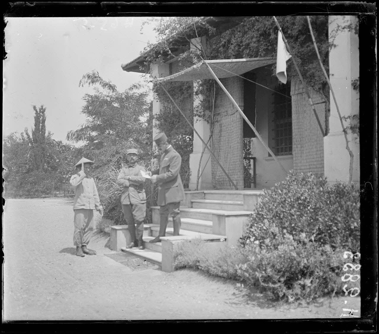 Topsin. Q.G. du camp retranché. Le lieutenant-colonel Bouin. Visite d'un offier d'état-major anglais.