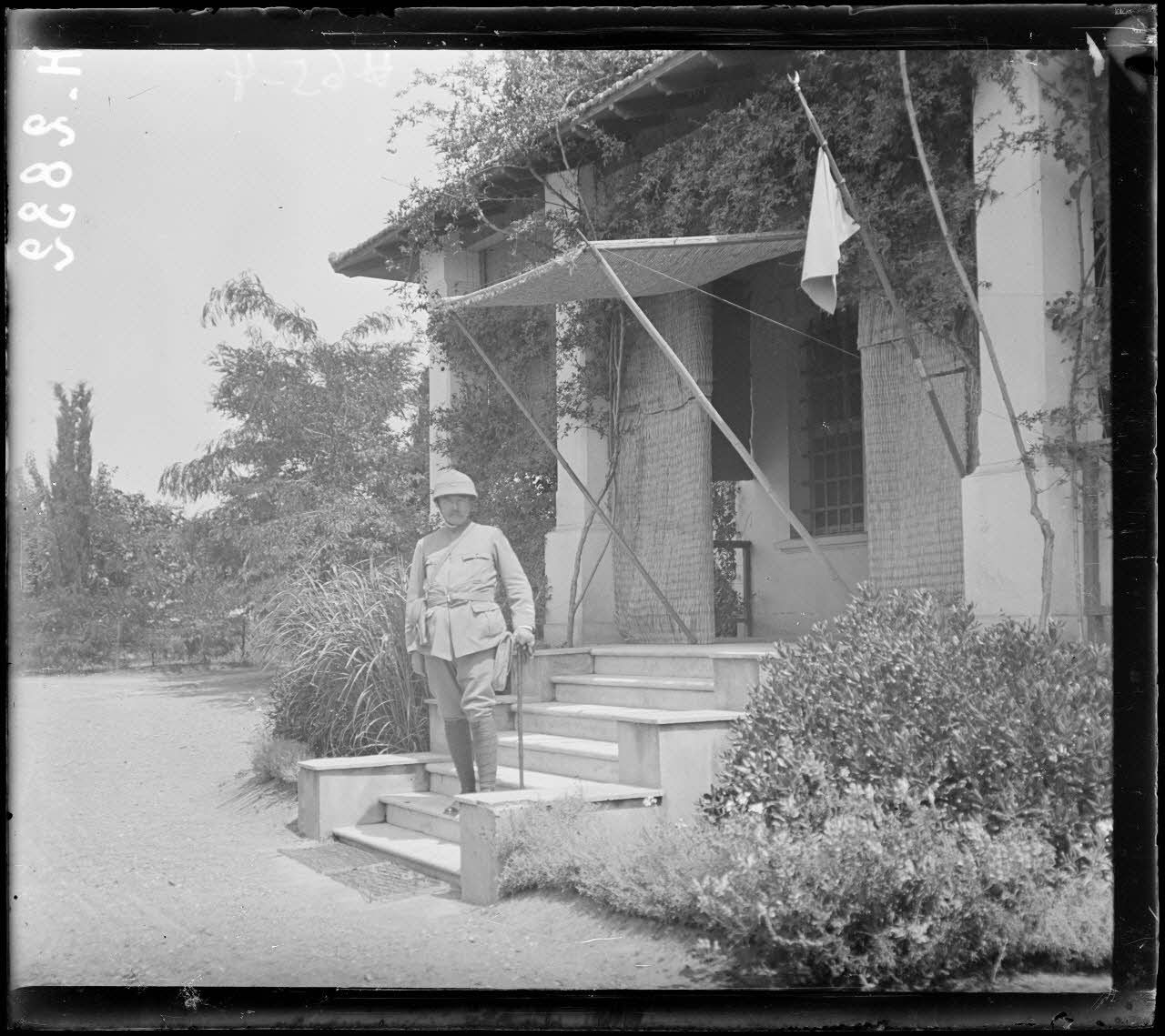 Topsin. Lieutenant-colonel Bouin sur le perron du Q.G.