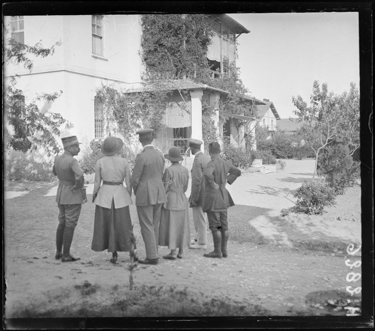 Topsin. Quartier général du camp retranché. Le lieutenant-colonel Bouin. Visite de l'Etat-major anglais. [légende d'origine]