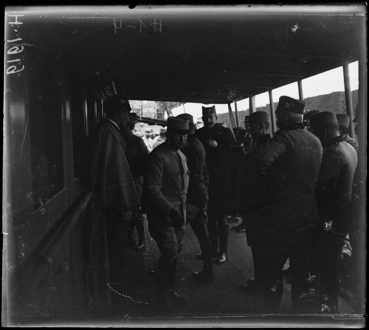 A bord de l'Algérie, soldats serbes et français munis de ceintures de sauvetage.