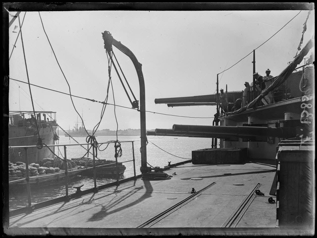 Toulon. A bord du croiseur russe Askold. Pièce de 150.