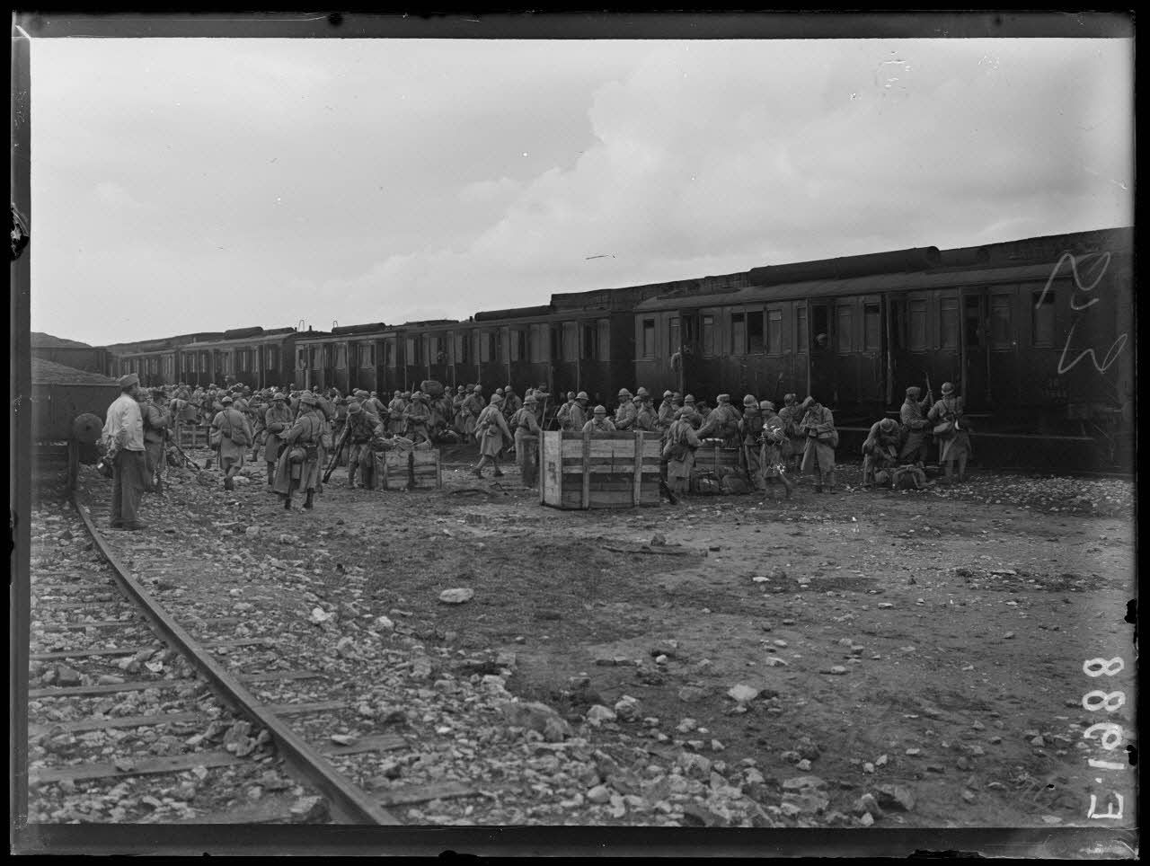 Des troupes coloniales arrivent en train sur le port et embarquent pour le Pirée. D'autres troupes coloniales et des soldats russes, serbes et français embarquent pour Salonique.