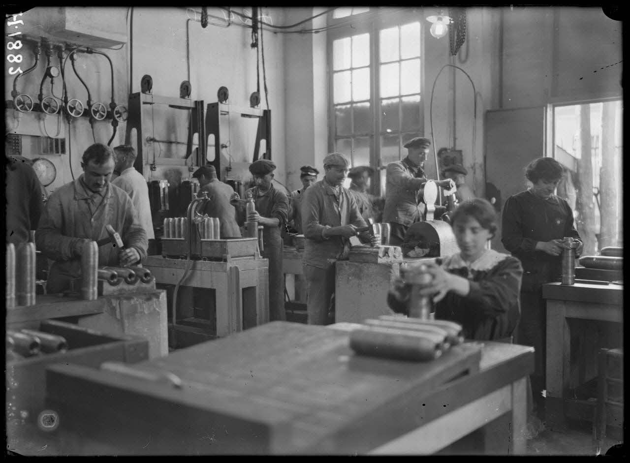 Toulon. Atelier de contrôle. Essai à 1400 kgs et poinçonnage du culot à 30T. [légende d'origine]