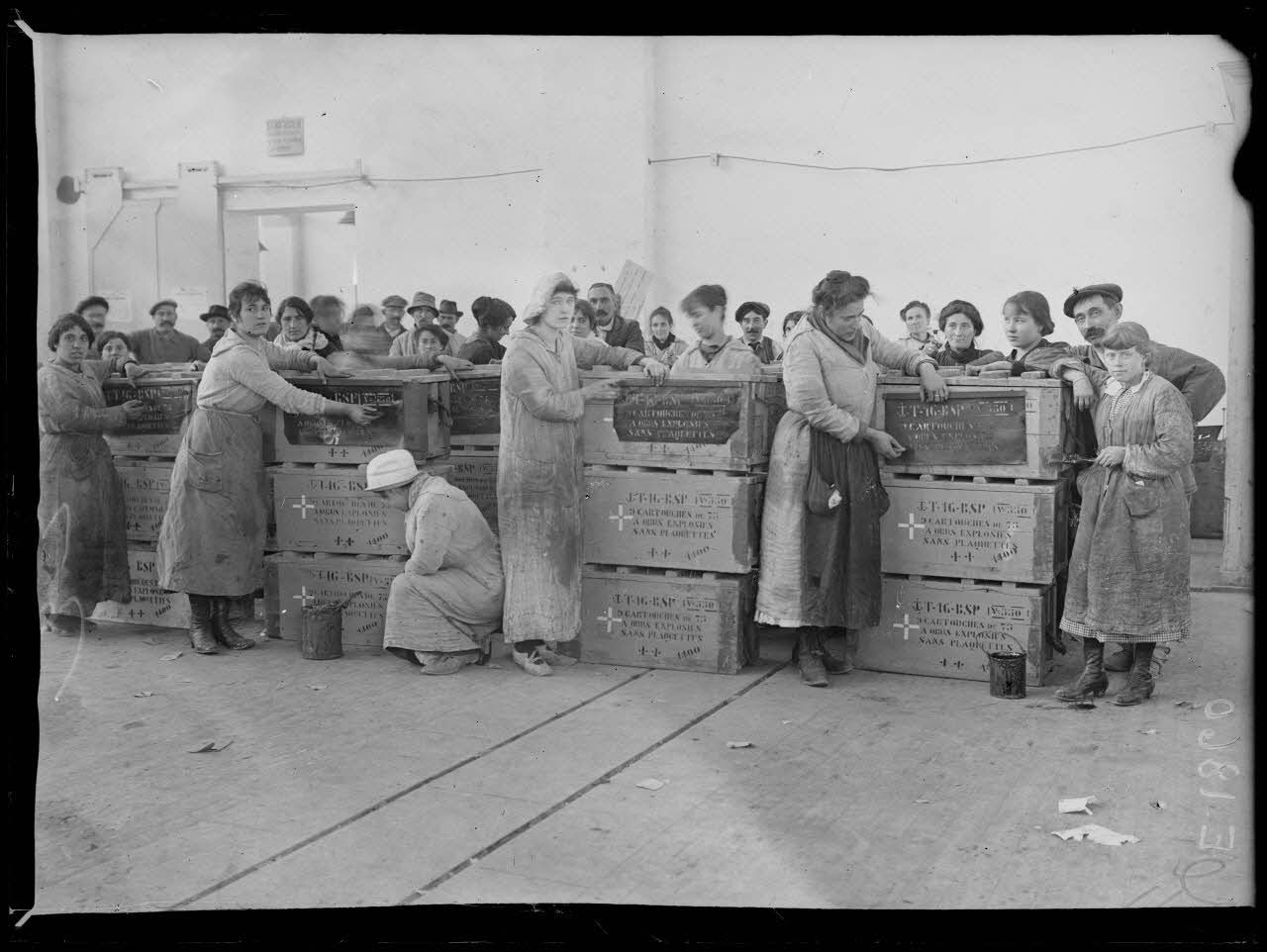 Toulon. Bâtiment de la Pyrotechnie. Bat. 44. Marquage des caisses de cartouches de 75. [légende d'origine]